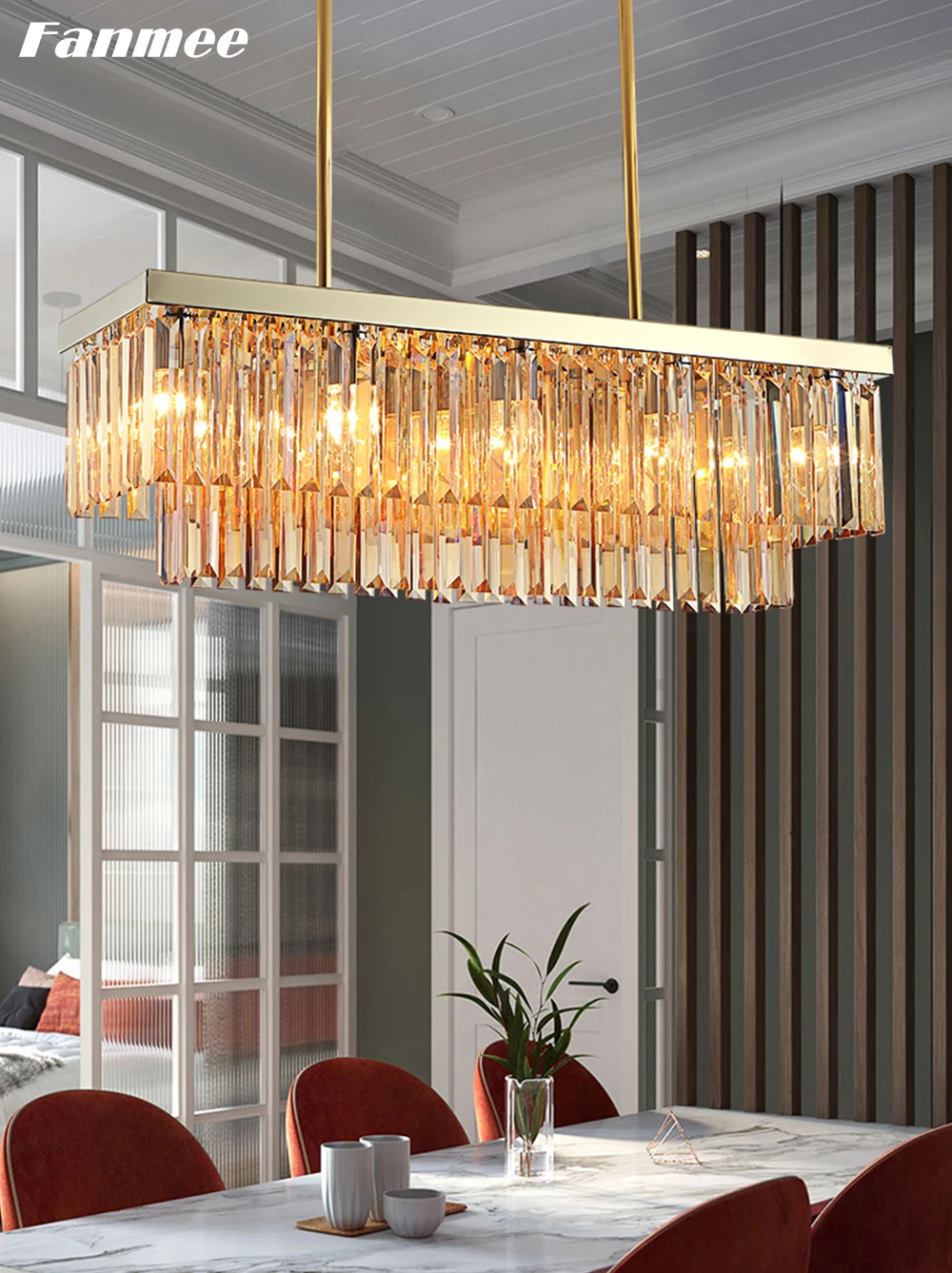 Современный прямоугольный подвесной светильник, светодиодный потолочный светильник с янтарным кристаллом, люстра, домашний декор, внутреннее освещение для столовой кухни
