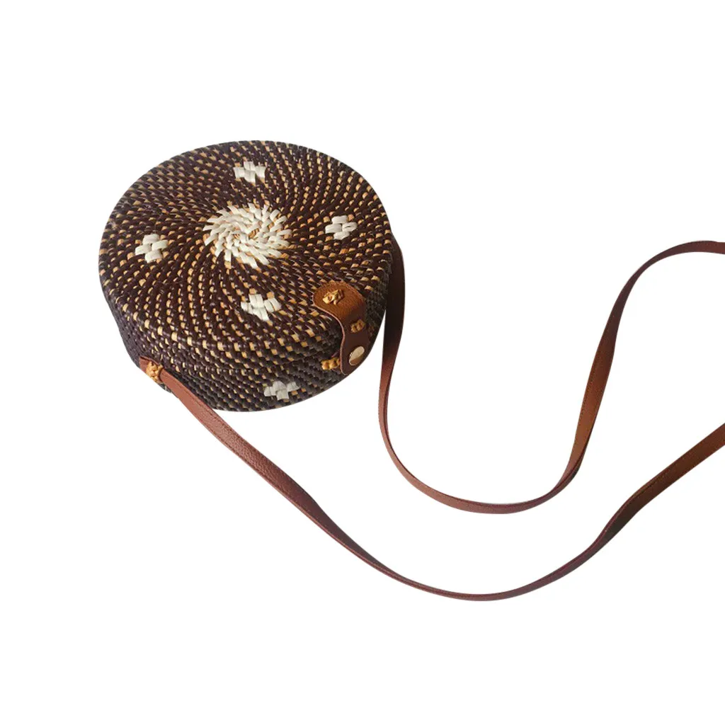 Круглая плетеная пляжная разноцветная сумка через плечо в стиле ретро из ротанга