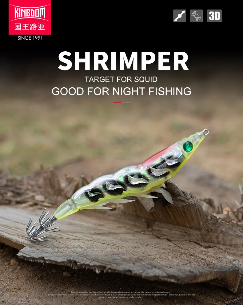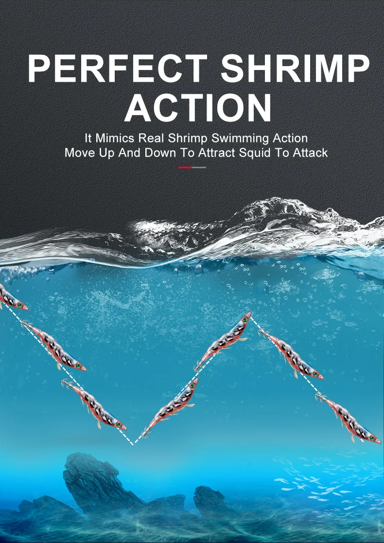 Корпус креветок очень красочный и светящийся, который притягивает рыбу, чтобы взять приманку независимо от дневного света или в темноте.