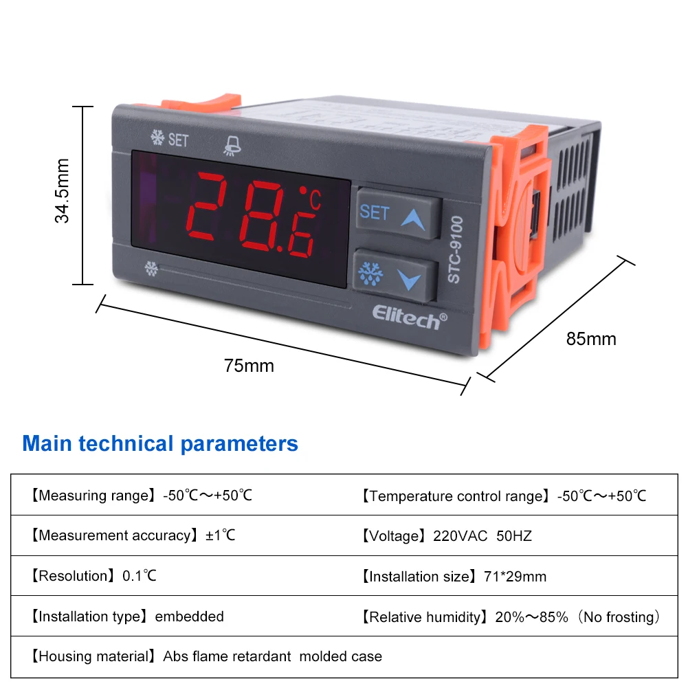 Модель: STC-9100 Управление Тип: кнопка увеличения температуры Режим управления: Интеллектуальный регулятор температуры Предмет измерения: холодильная камера, морозильная камера Диапазон температур: -40 °C ~ + 99 °C (°C) Погрешность измерения температуры: ± 1 °C (°C) Установка Тип: Встроенный Рабочее напряжение: 220VAC ± 10% В переменного тока, 50/60 Гц (V) Размер отверстия: 71 мм (ширина) × 29 мм (высота) (мм) Размеры: 75 мм (ширина) × 34,5 мм (высота) × 85 мм (глубина) (мм) Вес: 0,3 (кг)