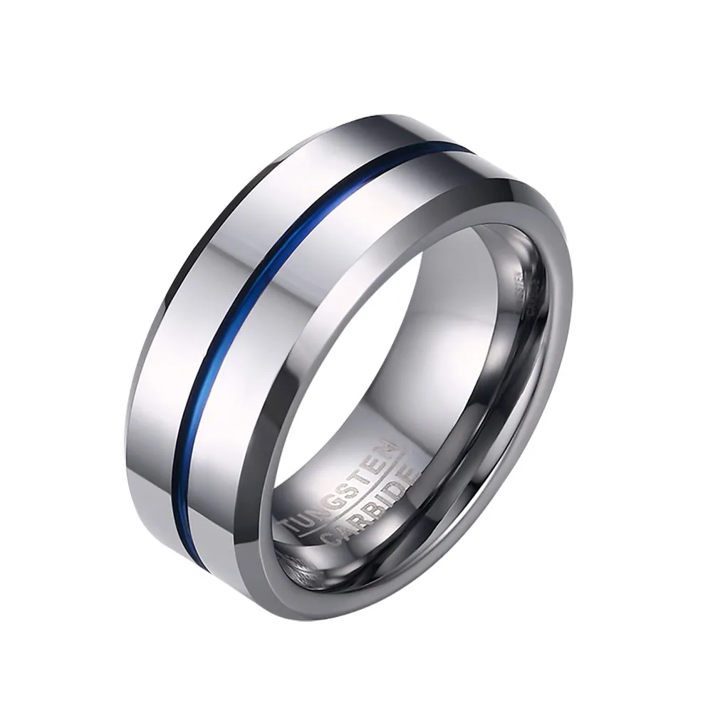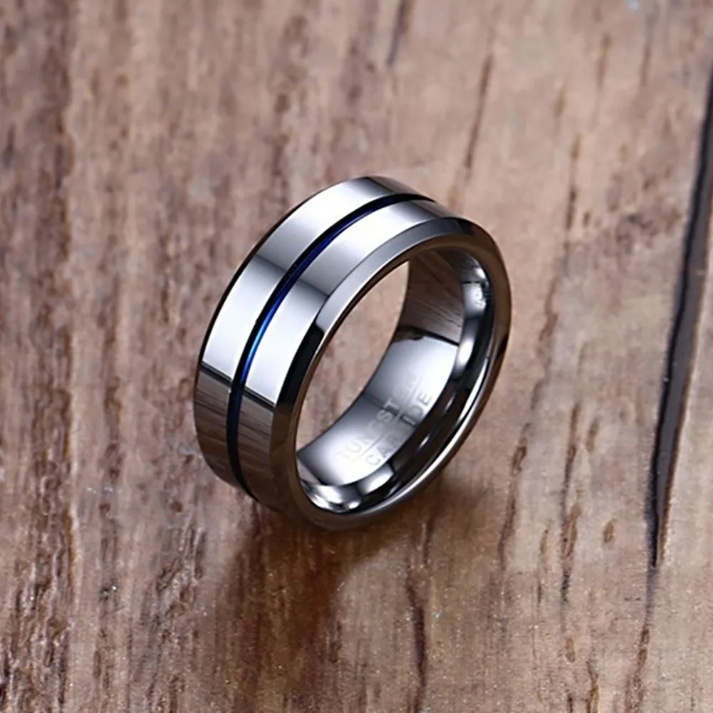 Серебряный 8 мм толщина чистый вольфрамовое стальное кольцо синий паз полировки кольцо для свадьбы обручение