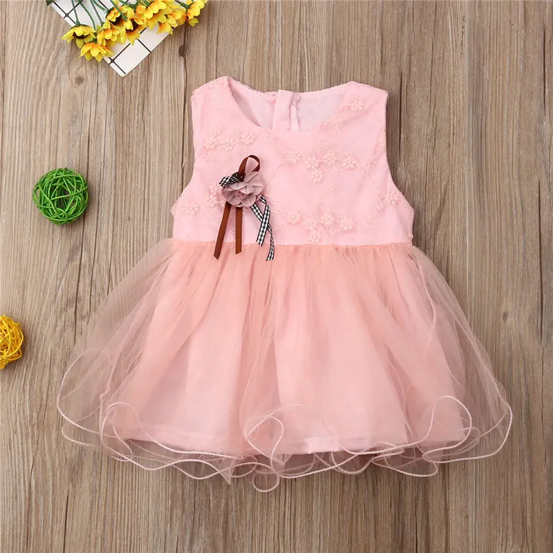 Милое кружевное платье для крестин с бантом и розой маленьких девочек элегантная