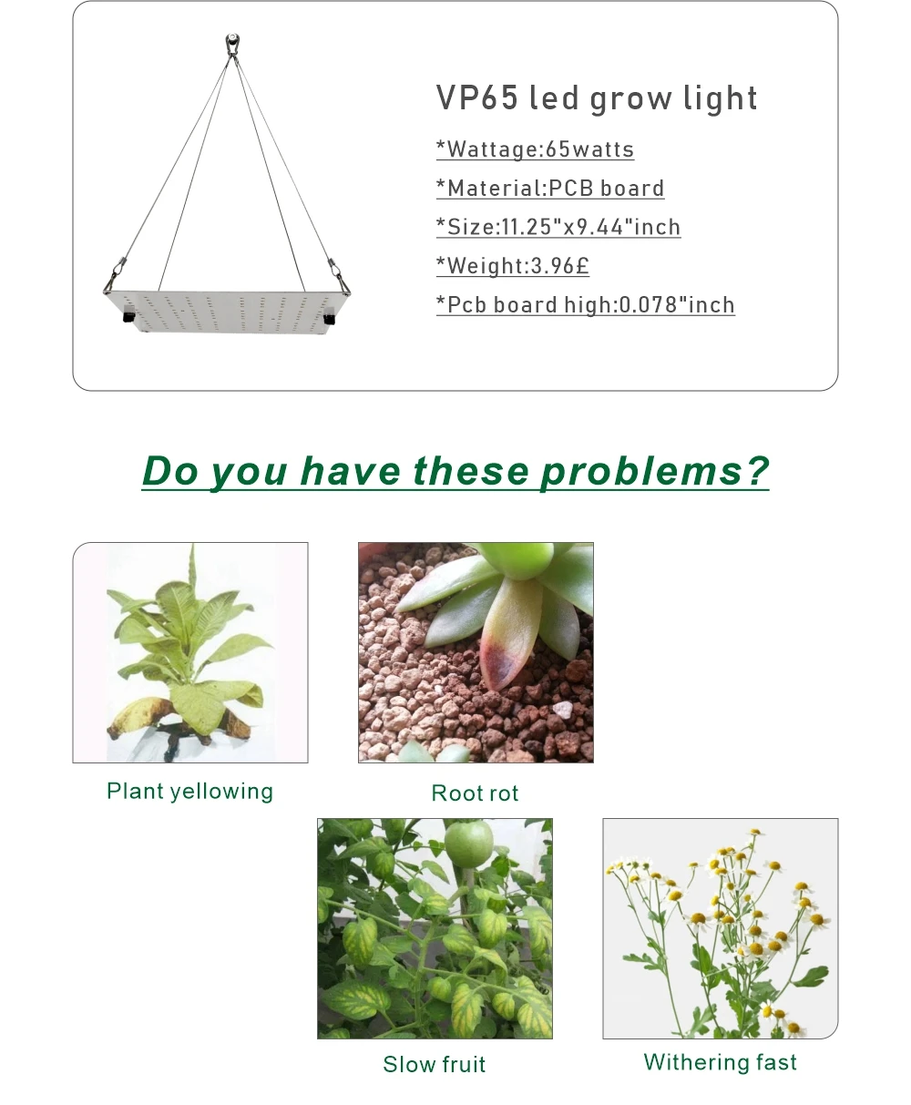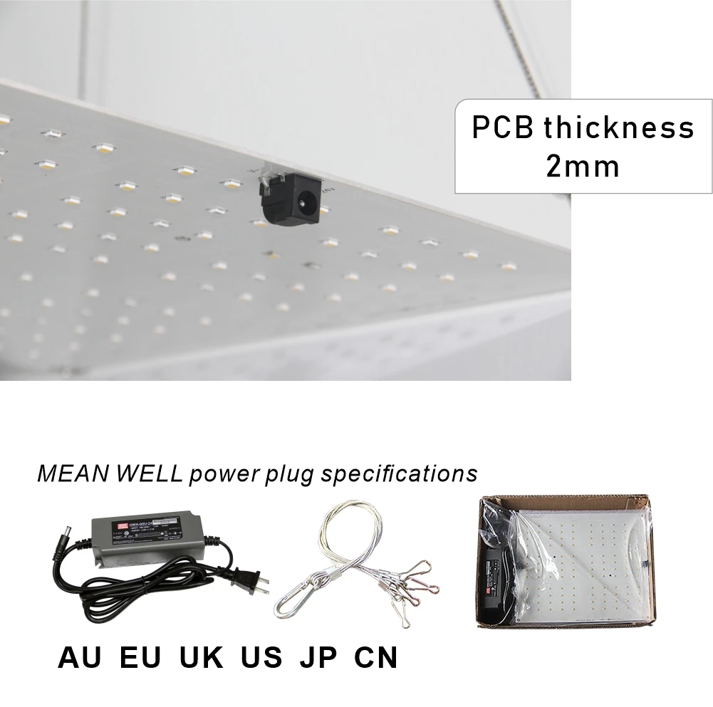 Модель: VP65 Название: вертикальный растительный светильник, серия VP65 Размеры: 286x240x2mm Мощность: 65 Вт Входное напряжение: AC100 ~ 240 В/50 ~ 60 Гц Светодиодный чип, Количество: 90 * LM301B + 30 * 660nm Выходное напряжение: DC24V Ток на выходе: 2500mA Управление: контроллер, регулировка яркости CCT:3500k + 660nm Тип СВЕТОДИОДА: Samsung LM301B Материал корпуса: алюминий Рабочая Защита окружающей среды:-20 ℃ ~ 40 ℃,45% ~ 95% относительной влажности PAR umol/m2. s:1060/38 см Особенности: Защита от УФ-лучей и огня Драйвер: Meanwell Срок службы: 50000 ч Гарантия: 2 года гарантии Сертификация: CE RoHS N.W.: 1,8 кг Размер внутренней коробки: 380x280x50mm Вес брутто (внутренняя коробка): 2,2 кг/шт. Стандартная конфигурация: светодиодный светильник для выращивания, драйвер Meanwell x1, Линия электропередачи x1, вешалка x1