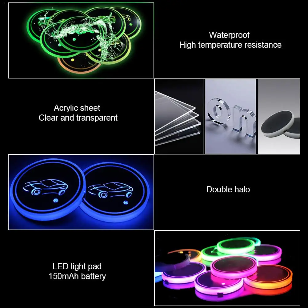 Функция 3,2 в 1: Подставка для стаканов и Светодиодная лампа RGB, удобная и безопасная для использования в качестве держателя стаканов в автомобиле, также хорошо подходит для украшения интерьера автомобиля, С пыленепроницаемым и водонепроницаемым материалом IP67, автомобильный подстаканник поможет сохранить паз чашки чистым и аккуратным. Легко устанавливается и подходит для большинства моделей автомобилей.