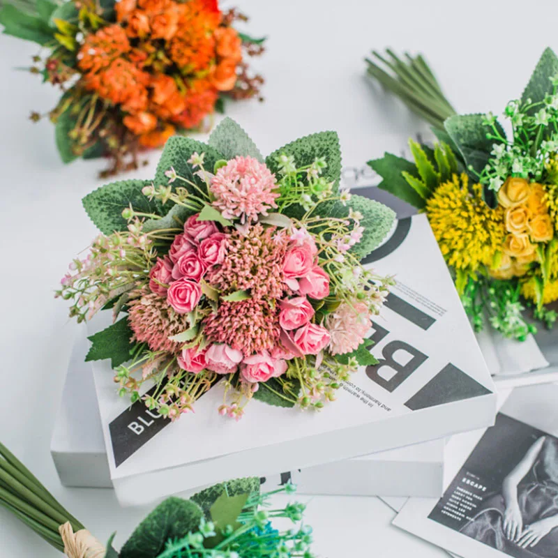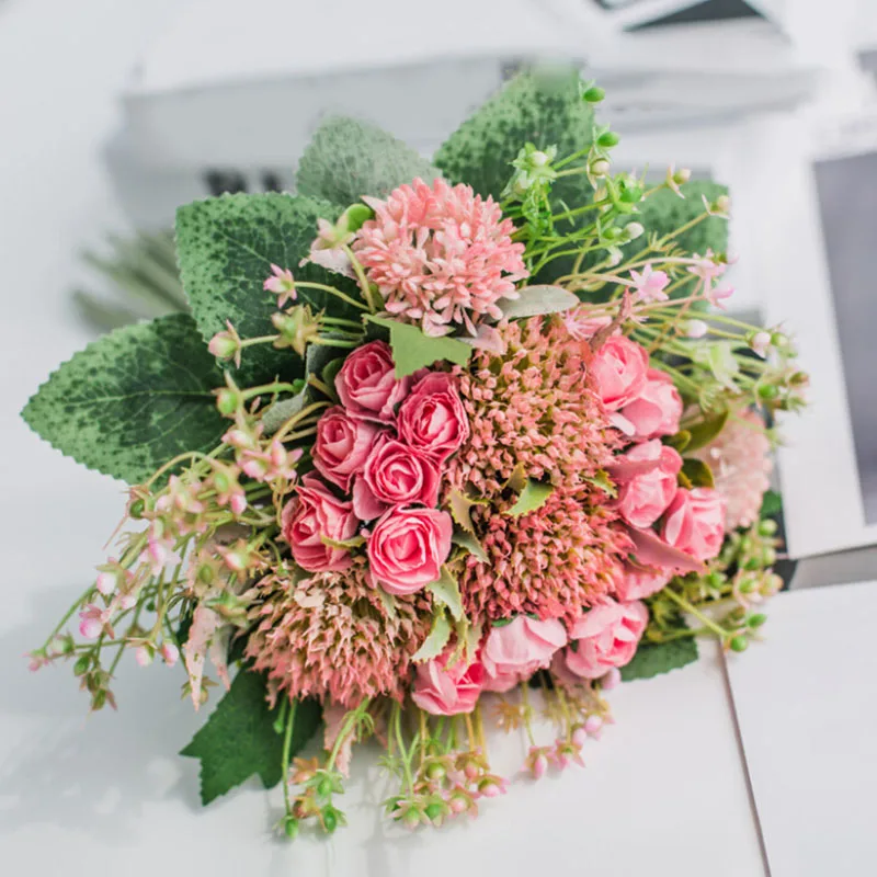 Искусственные цветы розы Букет свадебное украшение свадебный держащий Шелковый поддельный цветок букет домашний праздник сад украшение цветочный