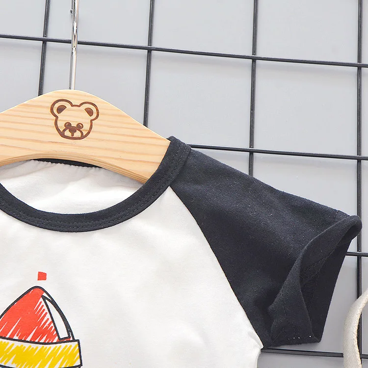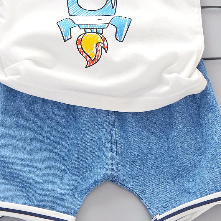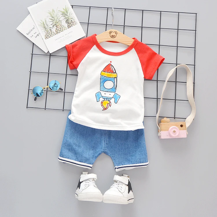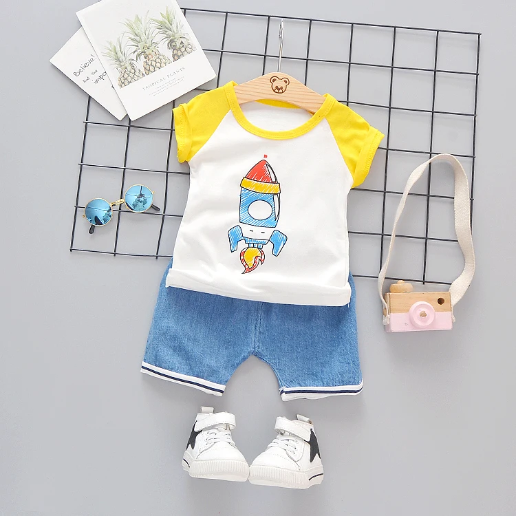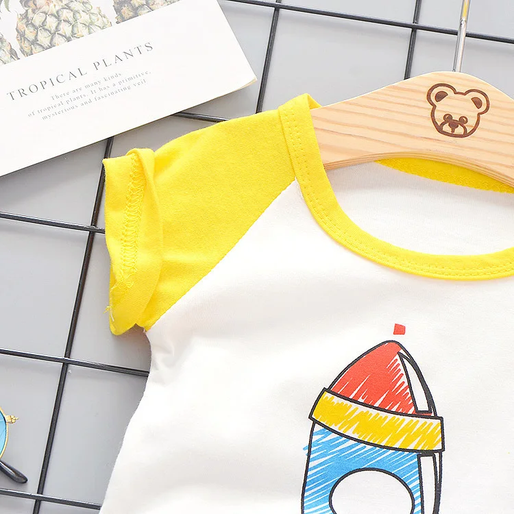 Новинка лета 2019, детская одежда, футболка с изображением ракеты из мультфильма, шорты, 2 шт./компл., Модный хлопковый костюм для маленьких мальчиков и девочек, спортивные костюмы для От 0 до 4 лет