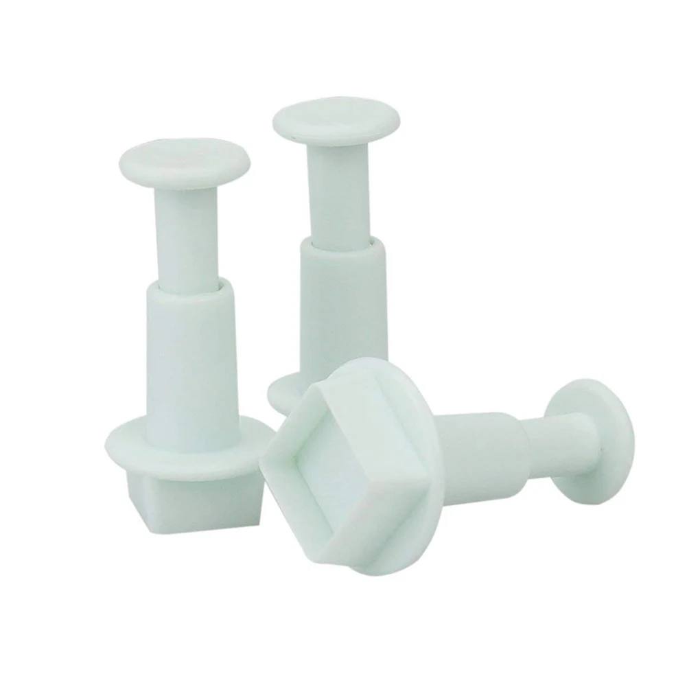 3Pcs/Set Square Shape Cake Plunger Set Fondant Sugarcraft Decorating Cutters Tools(White)