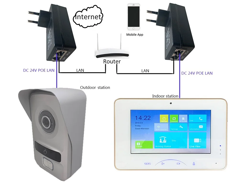Примечание: Эта ссылка включает только наружный дверной звонок, не включает в себя внутренний экран дисплея и переключатель PoE