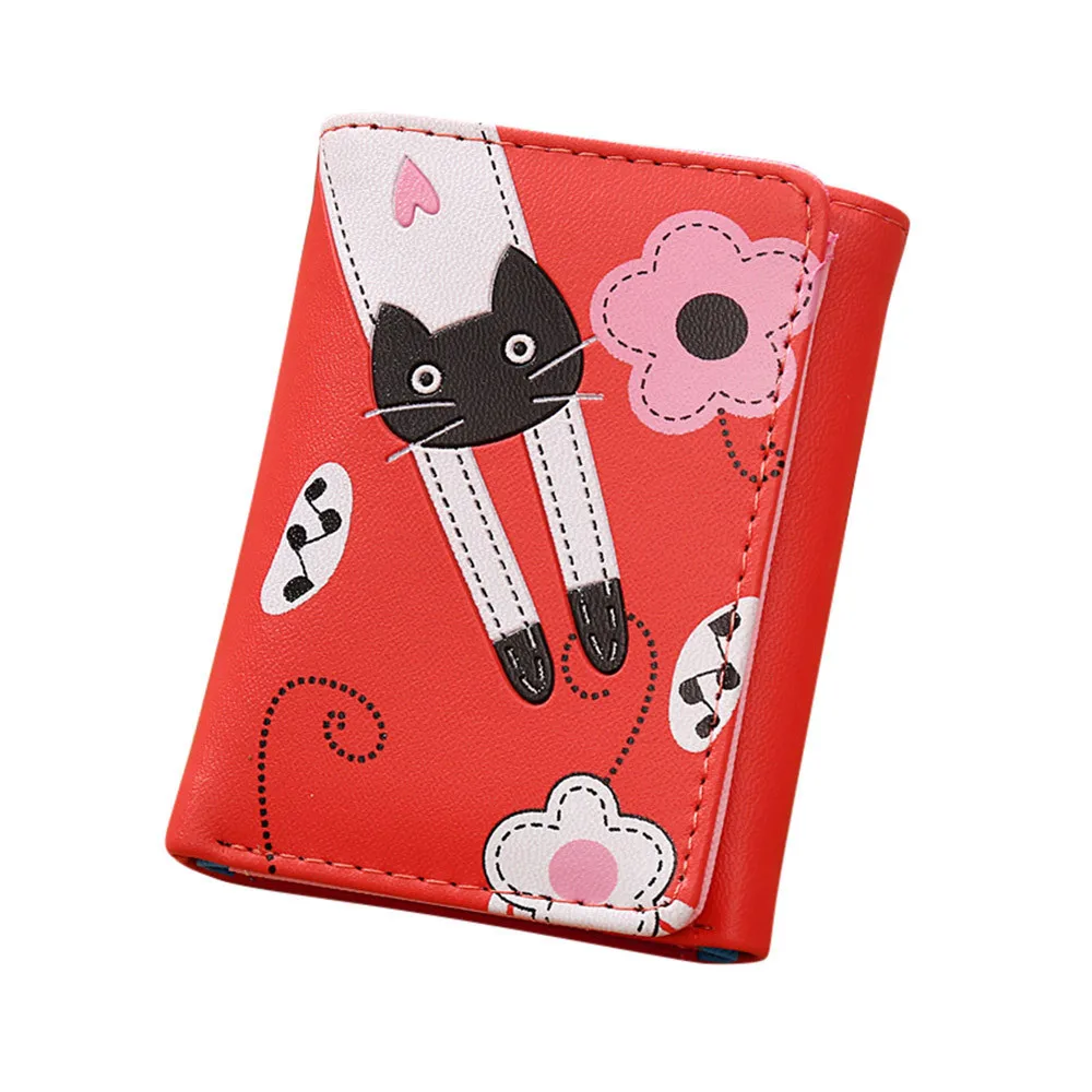 Женский кошелек с кошкой и цветочным узором на застежке, короткий кошелек, визитница, сумочка