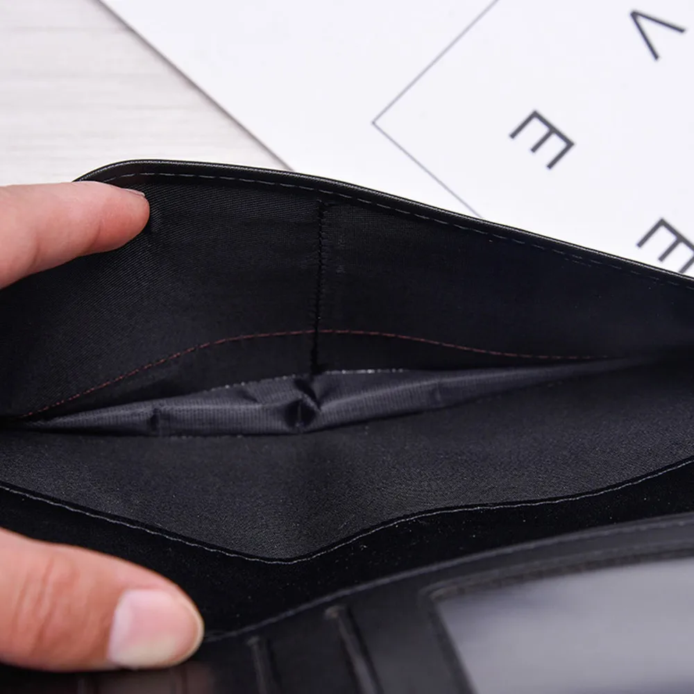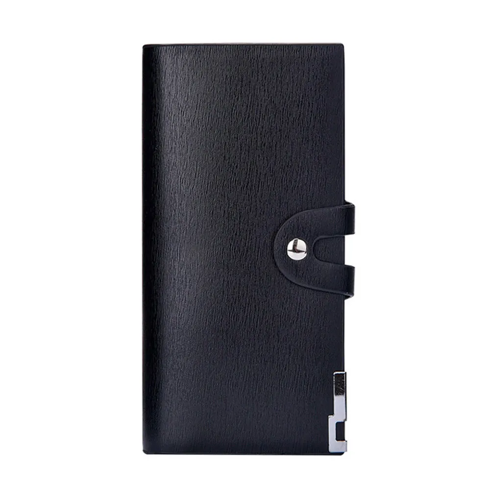 Men Long Section Button Bifold Business Leather Wallet Card Coin Wallet Purse