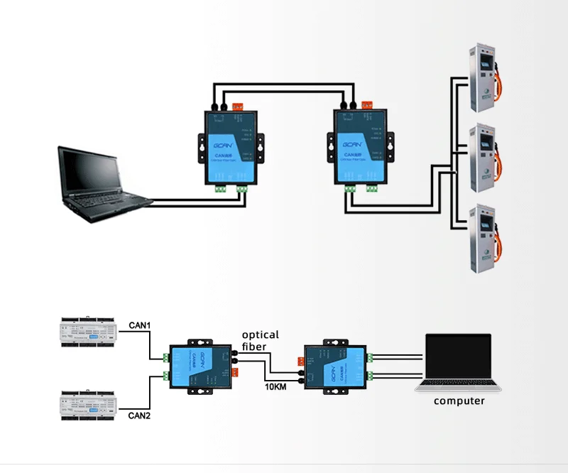 GCAN-208 преобразователь Оптического волокна в CAN может преобразовывать сигналы can bus в оптический сигнал. Время преобразования между данными CAN и оптическими сигналами является микросекундным, обеспечивая связь в реальном времени. GCAN-208 поддерживает любой протокол связи CAN bus, такой как CANopen, SAE J1939, DeviceNet, NMEA2000 и т. д. Он используется для расширения радиуса связи can bus, устранения помех на дальние расстояния и предотвращения повреждения автобуса.