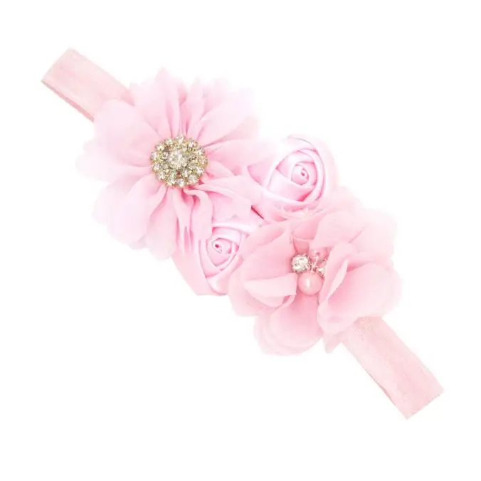 PARRY аксессуары для волос, Товары для новорожденных девочек, повязка на голову для маленьких девочек, Шифоновый Цветок розы, повязка на голову для вечеринки, эластичная повязка на голову для маленьких девочек