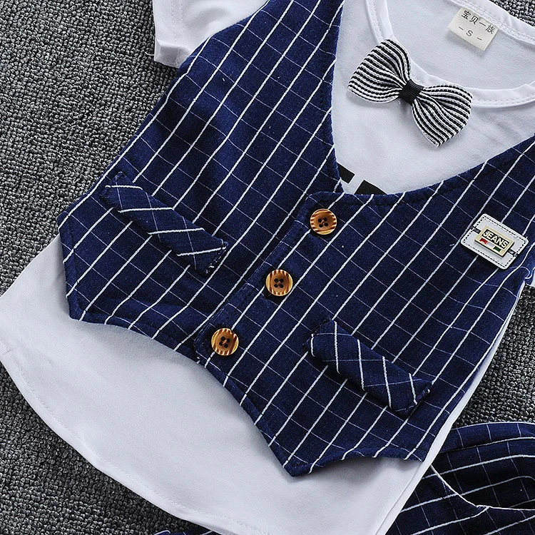 New Summer Children Fashion Tracksuits Baby Boys Girls T-shirt Shorts 2Pcs/sets Kids Gentleman Cotton Clothes Infant Sportswear For 0-4 Years