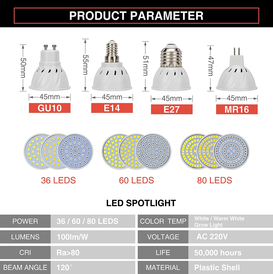 Цоколь лампы:E14/E27/GU10/MR16