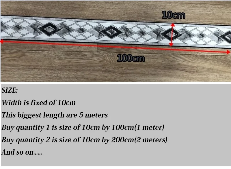 Материал: виниловые ПВХ обои границы Размер: Ширина фиксируется на 10 см Купить количество 1 размер 10 см на 100 см (1 метр) Купить количество 2 размер 10 см на 200 см (2 метра) И так далее... Использование: кухонная стена, ванная комната, гостиная ТВ фон Особенности: самоклеящийся, водонепроницаемый, съемный Пожалуйста, обратите внимание: 1. Продукты могут отображать разные цвета с разным светильник и другой графоскоп, например, с ярким светильник цвет будет светильник er, в то время как с более темный светильник цвет будет более глубоким. 2. Закажите достаточное количество, чтобы избежать разницы в цвете из разных партий (разные заказы разных партий) 3. Одна сторона стены использует одну и ту же партию обоев; Обои, которые вы получите, могут иметь некоторые морщины на нем или обоих концах, но это не влияет после склеивания на стену.