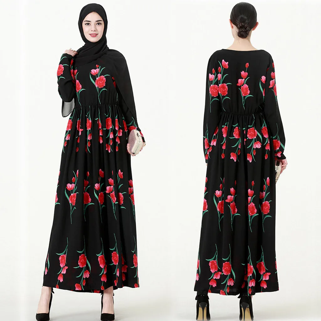 Женское мусульманское длинное коктейльное платье с цветочным принтом, Платье Макси