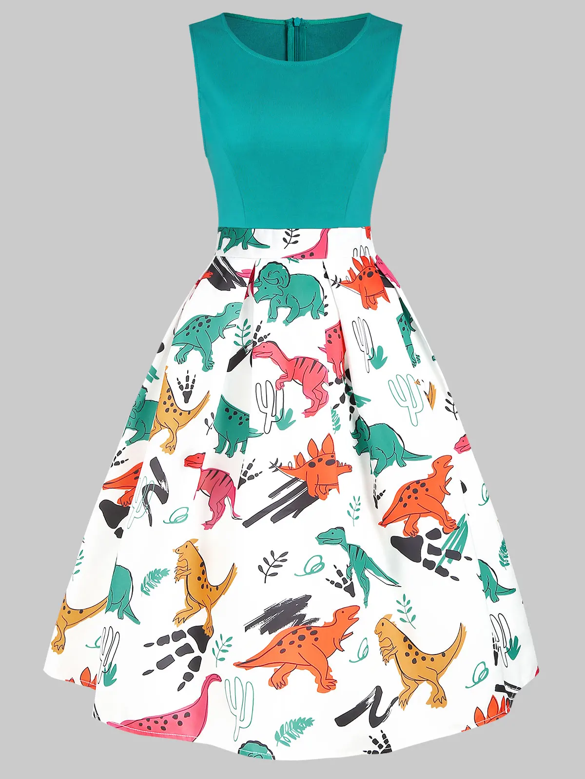 Женское винтажное платье без рукавов Wipalo, платье трапециевидной формы с принтом динозавра на лето, новое модное платье до колена с круглым вырезом, женская одежда