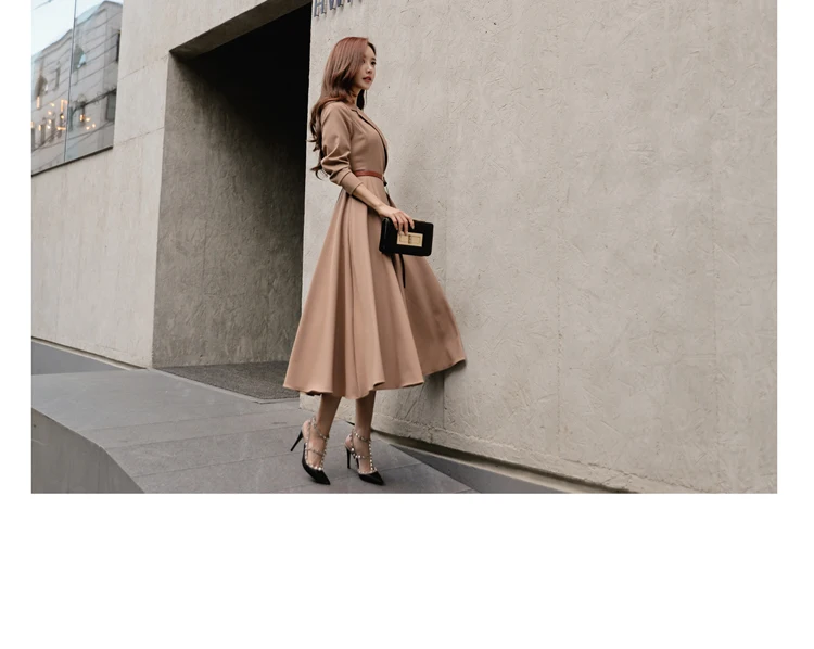Элегантное ТРАПЕЦИЕВИДНОЕ ПЛАТЬЕ С v-образным вырезом и длинными рукавами, плиссированное платье с поясом, Vestidos femme 2019, осень, DF456 <