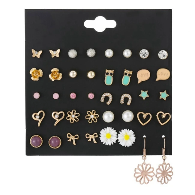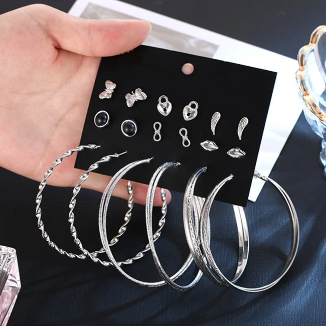 Punk Exaggerated Geometry Triangle Metal Stud Earrings 2019 Women Statement Crystal Earring Set Party Wear Accessories Brincos