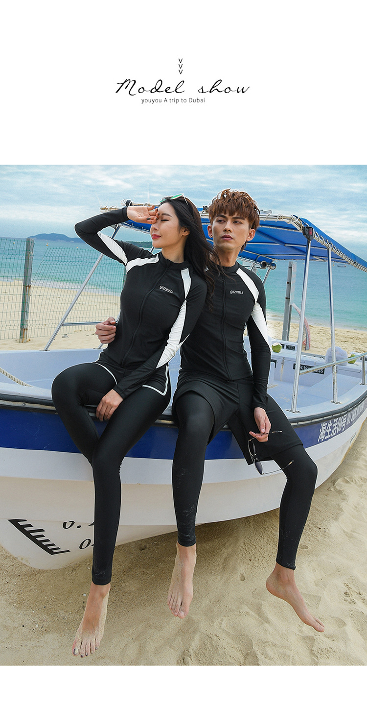 Мужская модель включает 3 штуки: 1 шт. рубашка+ 1 шт. леггинсы+ 1 шт. Мужские Шорты для купания Женская модель включает 5 шт.: 1 рубашка + 1 леггинсы + 1 плавки + 1 комплект бикини (верх и низ) |