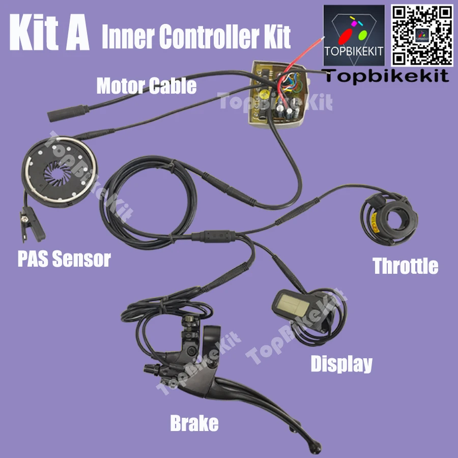 Комплект А: Контроллер HL2 15A + дисплей KT LCD11 + дроссельная заслонка + KT D12L PAS +Тормоз+ 1-4 Удлинительный кабель + 9 контактов Удлинительный кабель двигателя (1 метр)