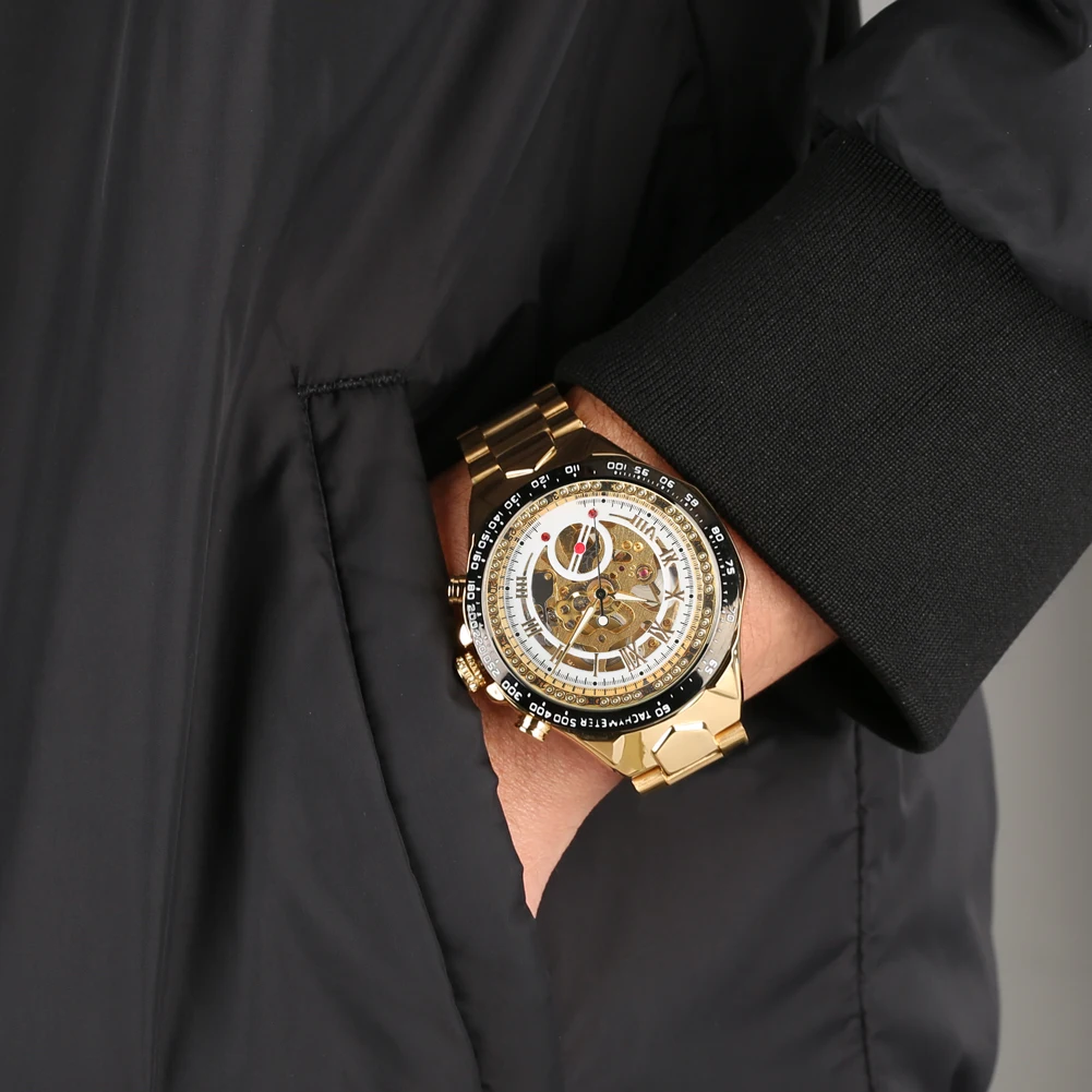 Подарок: стильные механические наручные часы, они хорошо сидят и выглядят фантастически, элегантный праздничный подарок обязательно будет дан некоторые комплименты деловым коллегам и клиентам, друг. Кроме того, это хороший подарок для ваших друзей и семьи в качестве рождественского подарка.