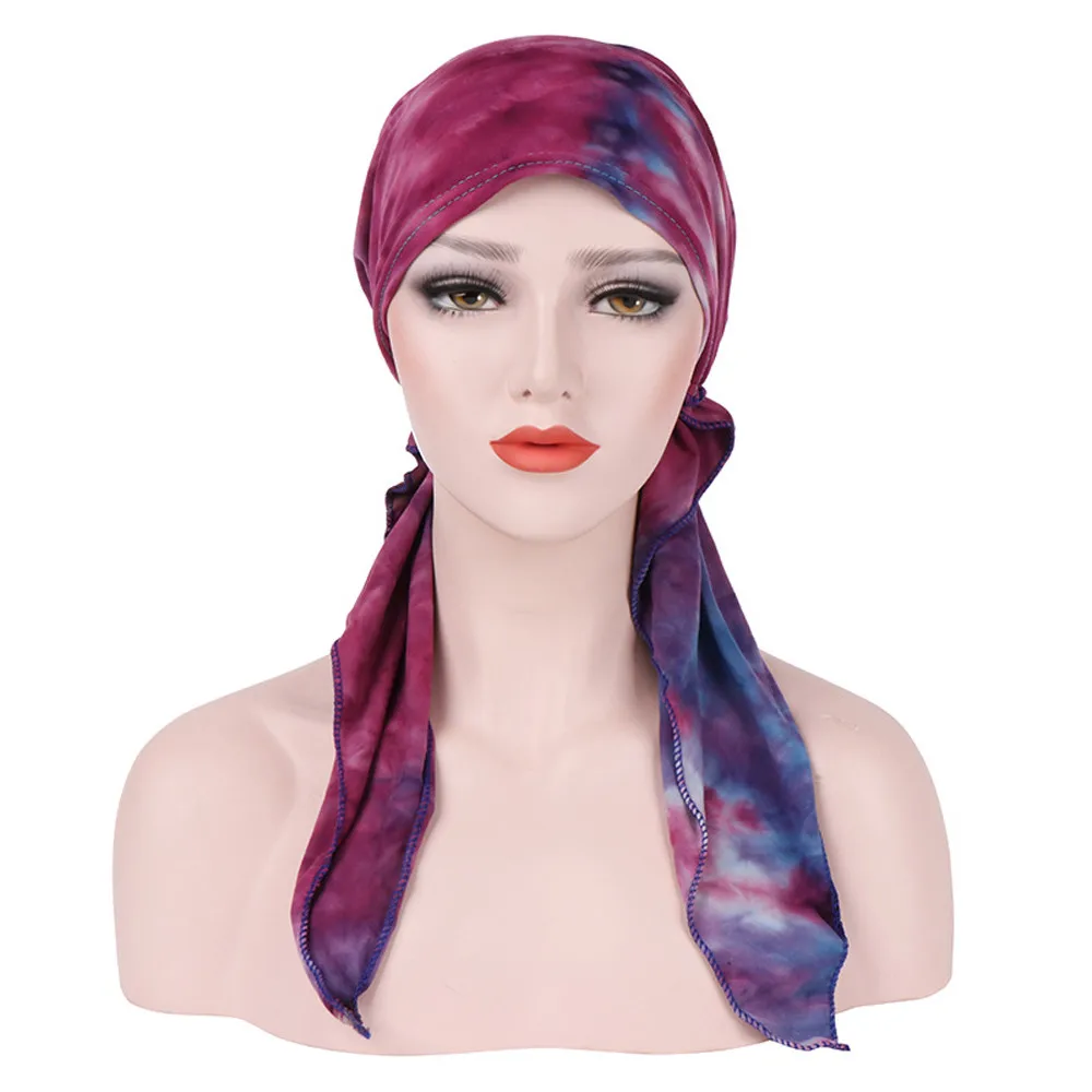 Женский индийский мусульманский Эластичный Тюрбан шляпа галстук-краска хлопок потеря волос головной платок, шарф