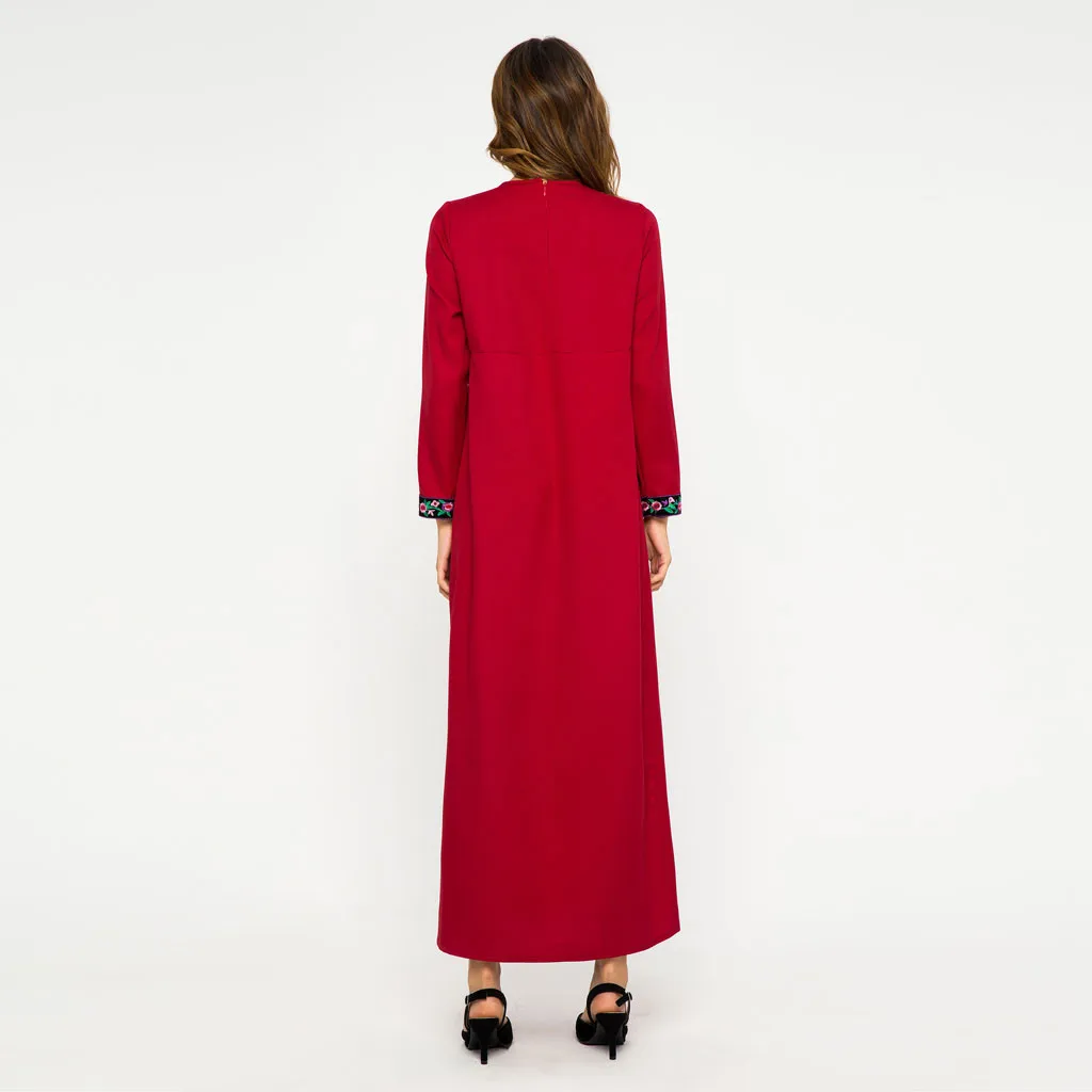 Мусульманское платье для женщин с круглым вырезом и длинным рукавом, Вышитое Плиссированное свободное платье