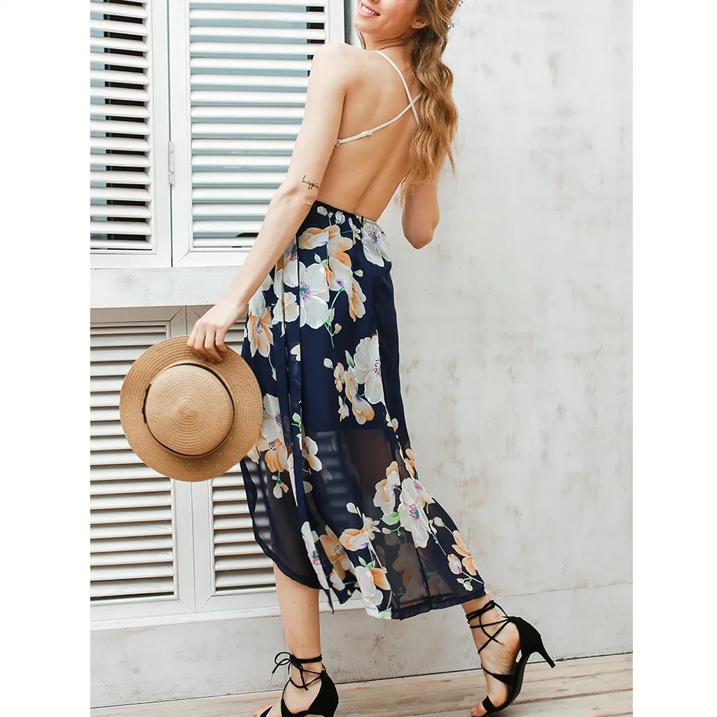 LONSANT Maternity Dress Sleeveless Suspender Backless Sundress lace V-neck Floral Print Pregnancy Women beach Dress