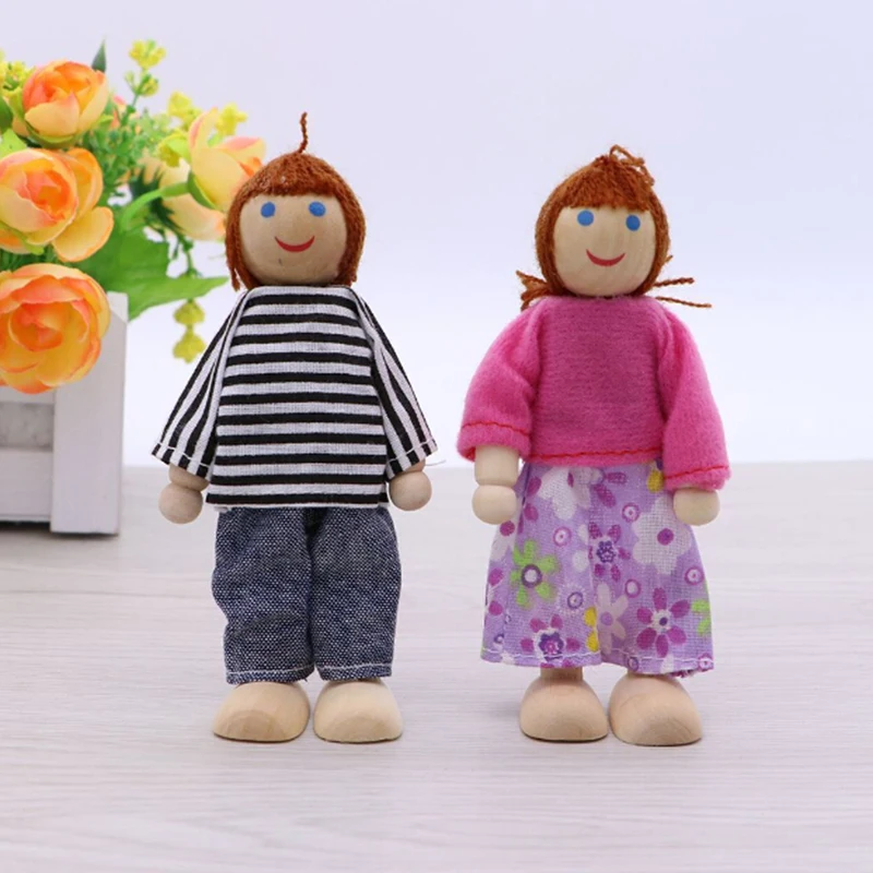 *7pcs Set Wooden Furniture Dolls House Family Miniature 7 People Doll Kids Toy
