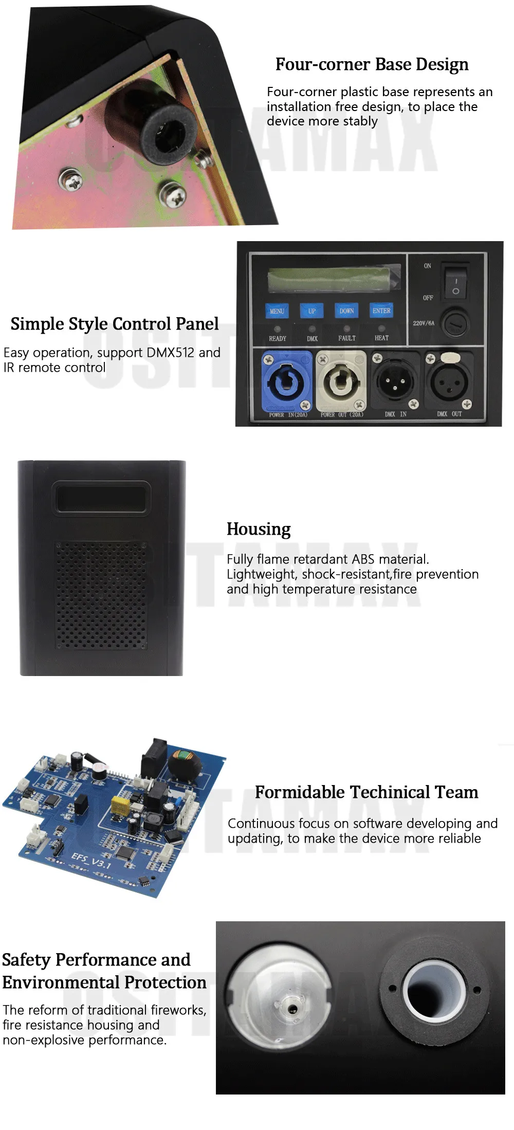 OSITAMAX принадлежит к старой фабрике, которая имеет более 13 лет истории и 10 лет опыта экспорта. Этот бренд более специализируется на поставке простых, но высокопроизводительных продуктов для развлекательных площадок, таких как дискотека, бар, ночной клуб, Свадебные мероприятия и домашние вечерние. Даже если вы не знакомы со сценическими лампами, вы можете легко начать работу. Конечно, если вы профессиональный диджей или осветитель, вы обнаружите более бесконечную возможность на наших продуктах. Мы надеемся, что вы присоединитесь к нам, чтобы вместе создать мир выхода из света!