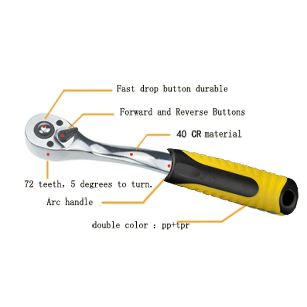 1/2 дюйма 3/8 дюйма 1/4 дюйма Трещоточный ключ 72 зубца 40CR Кривошип Трещоточный ключ ТРОК гаечный ключ Быстрый сброс двухсторонний Быстрый ключ