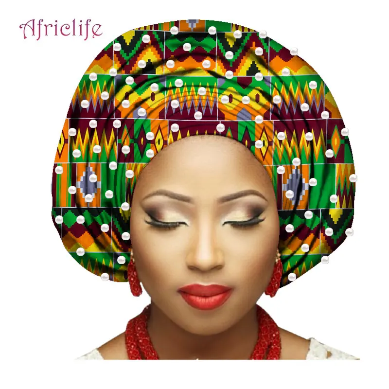 Шарфы с бусинами африканские бусы тюрбан головной убор в нигерийском стиле желе 100% хлопок африканский головной убор для женщин африканская леди AF007