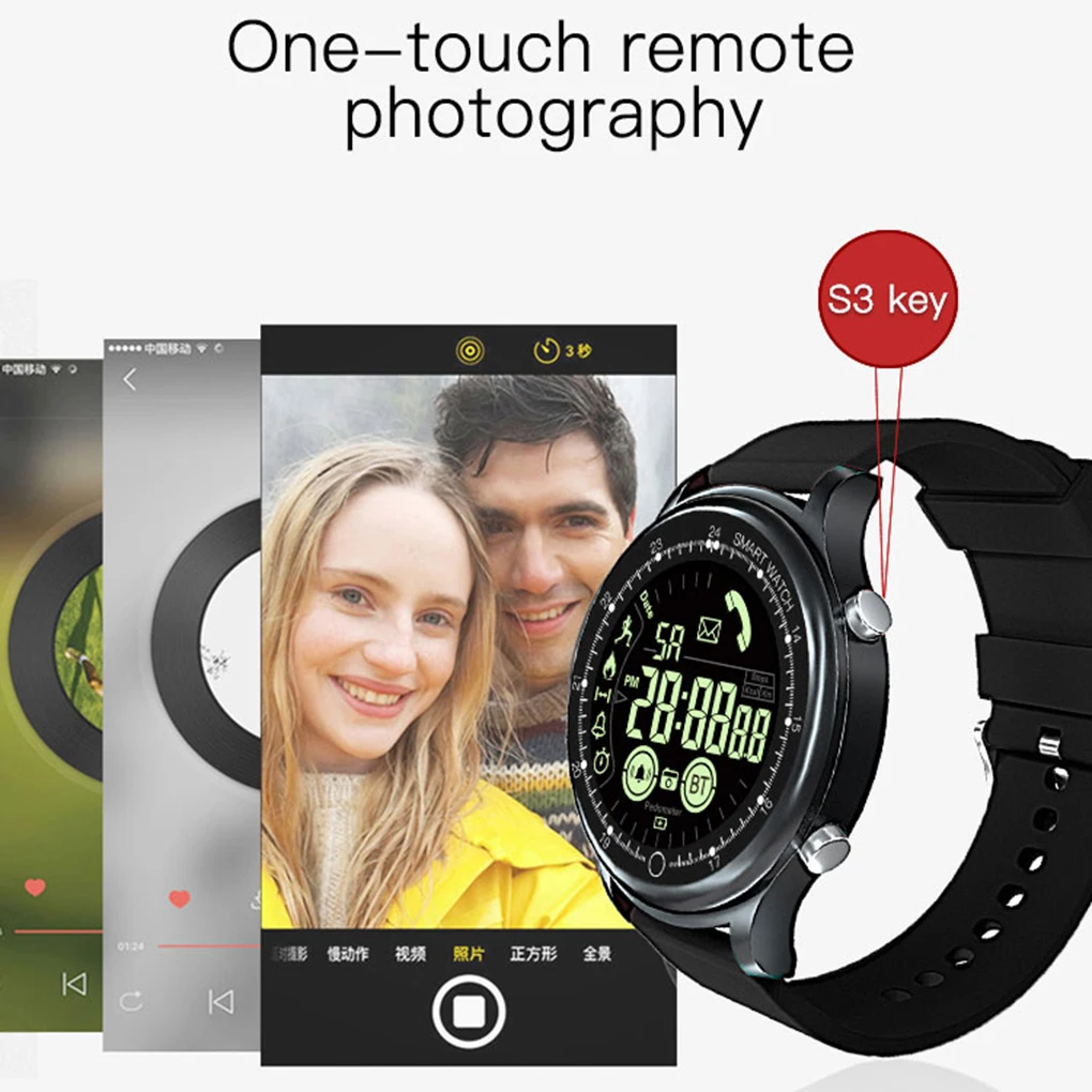 Эти наружные наручные часы bluetooth можно использовать для управления камерой, делать групповое изображение с легкостью.