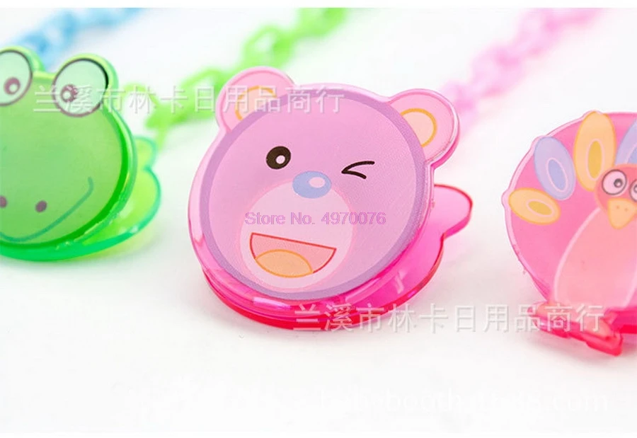 [name] pacifier anti-chain [Material] PP [Chain] chain buckle style random [size] length 23.5cm [product pattern] cartoon cute animal (paper card packaging existing style color is randomly distributed) [color] powder / blue / green / yellow / rose red [conventional packaging]single OPP bag |