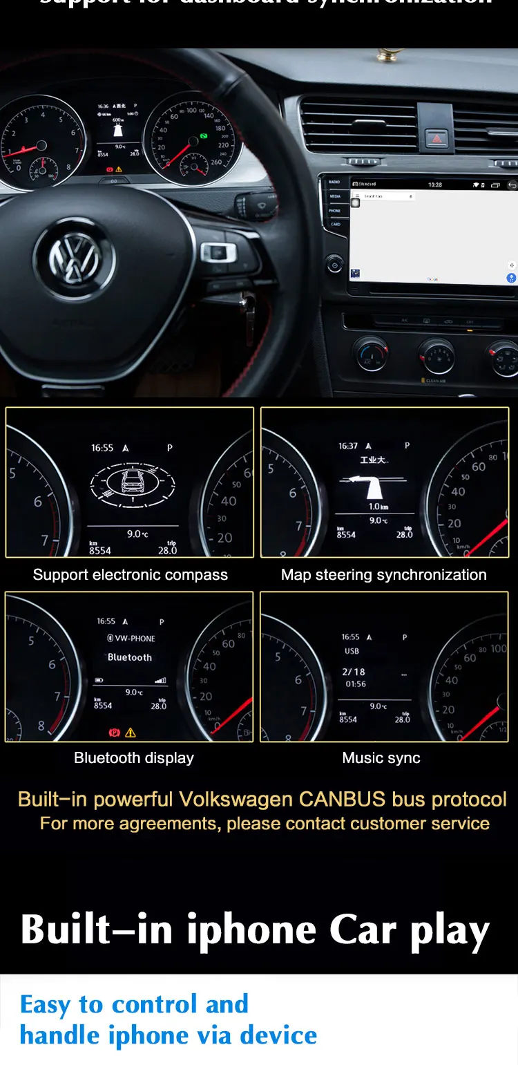 Поскольку платформа Volkswagen MQB является двусторонним протоколом, продукты нашей платформы MQB почти совместимы со всеми функциями оригинального автомобиля;