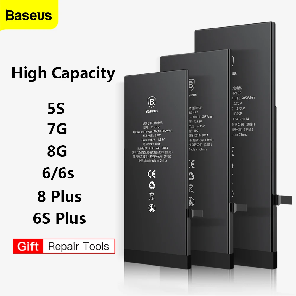 Аккумулятор для телефона Baseus для iPhone 5S, 6, 6S, 7G, 8G, 6S PLUS, 8 PLUS, 2200 мА/ч, запасные батареи большой емкости с бесплатными инструментами для ремонта