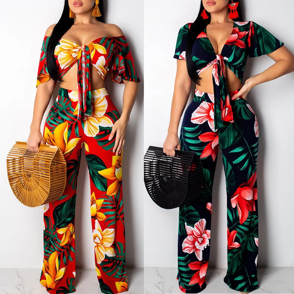 1 хУкороченные топы + 1 х длинные брюки с широкими штанинами