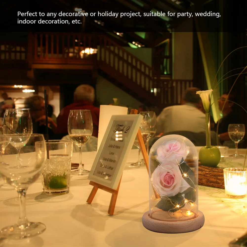 Красная роза цветок строка светильник стеклянный купол на деревянной основе светодиодный ные лампы на День святого Валентина подарки