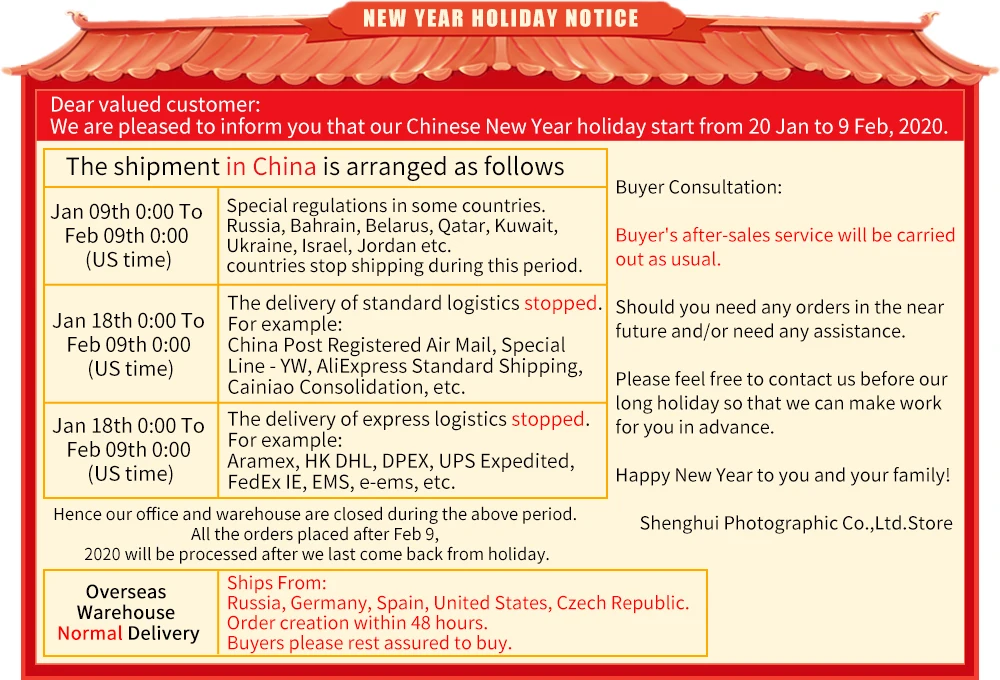 Магазина Shenghui Photographic Co., Ltd. Store работает с 19.03.2016. его рейтинг составлет 90.21 баллов из 100. В избранное добавили 10262 покупателя. Средний рейтинг торваров продавца 4.6 в продаже представленно 335 наименований товаров, успешно доставлено 20537 заказов. 2054 покупателей оставили отзывы о продавце.