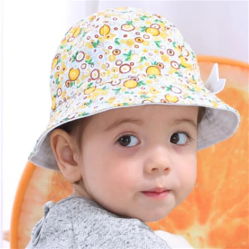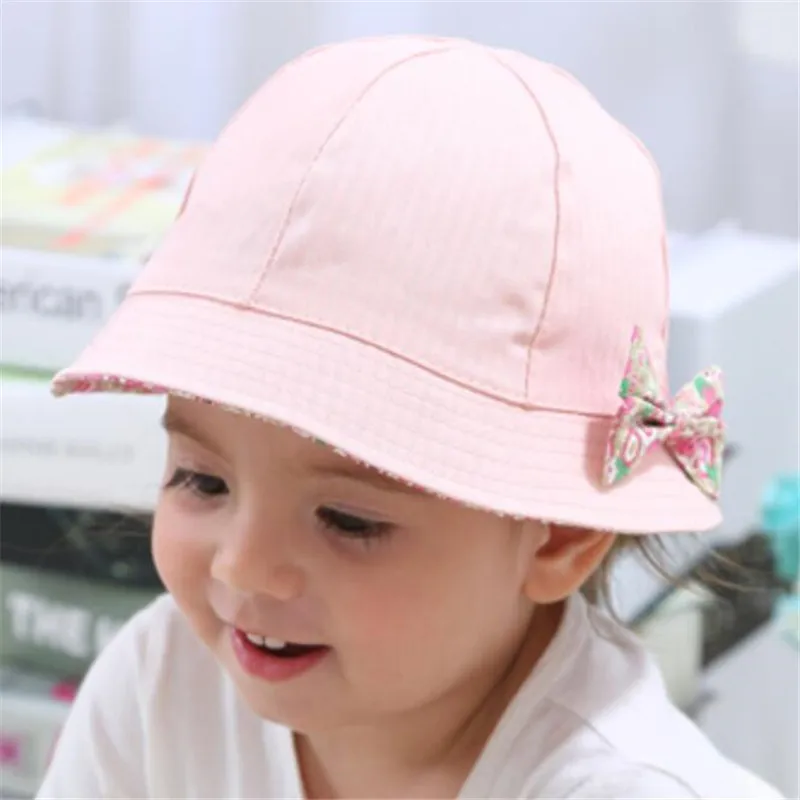Summer Baby Girls Sun Hat Cotton Baby Hat Kids Child Cap Bowknot Flower Boys Bucket Hat Double Sided Can Wear,Gorros Infantiles