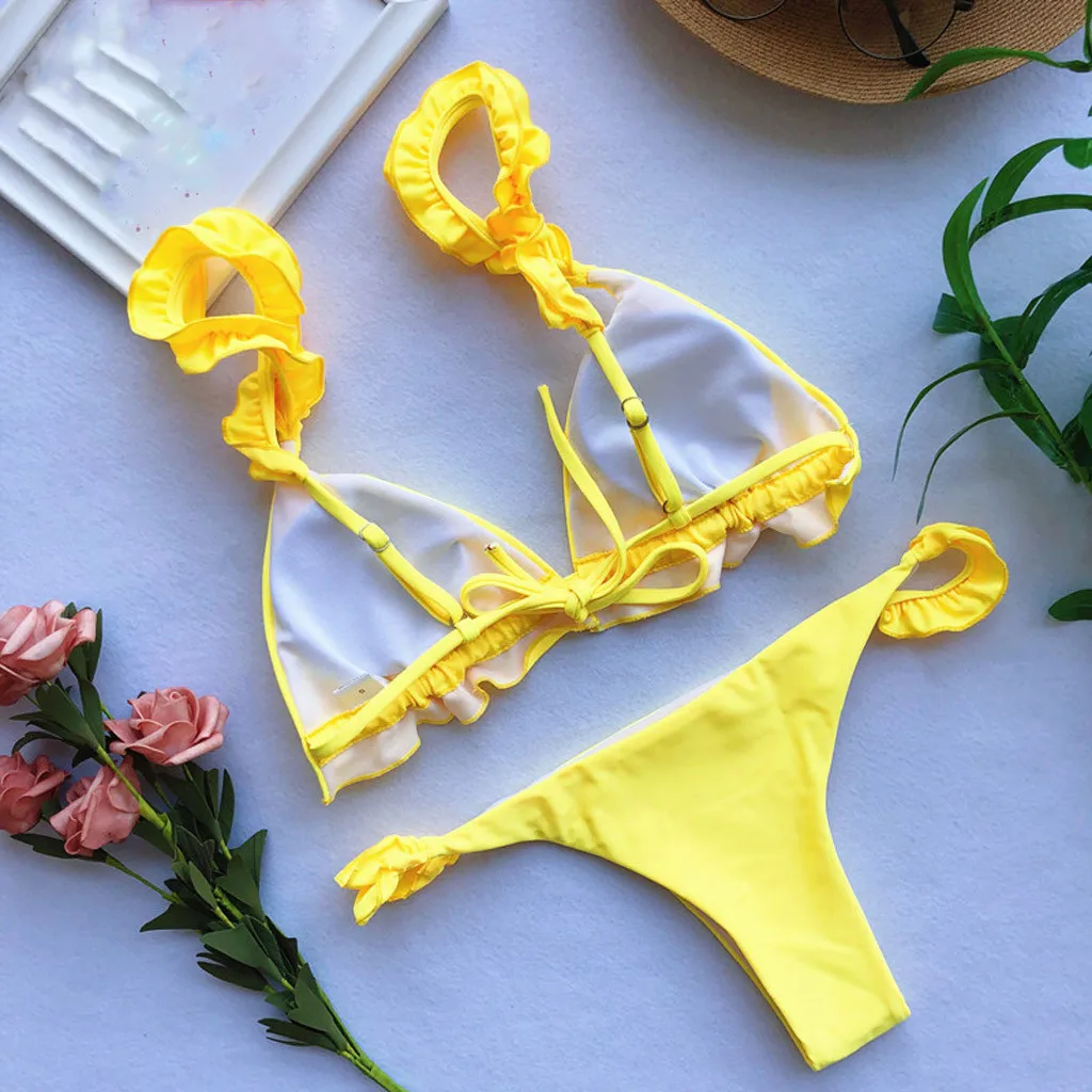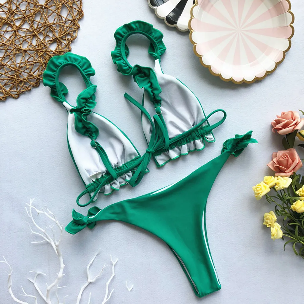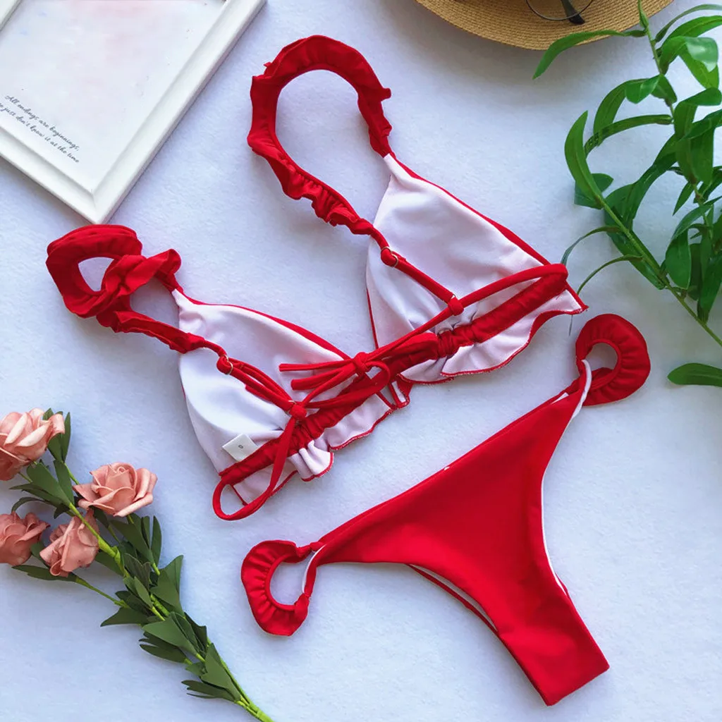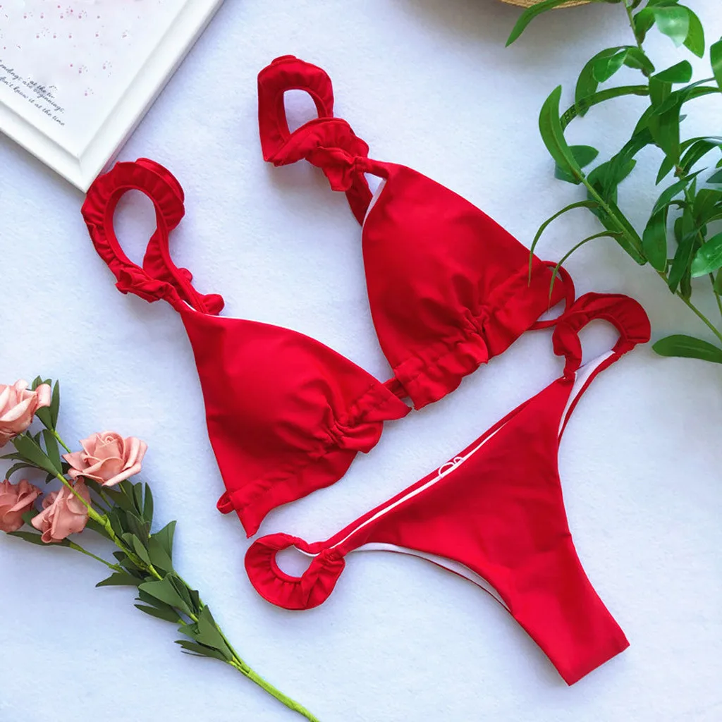 Для женщин пикантный однотонный бикини набор пуш-ап подкладкой одежда для купания купальник пляжная одежда