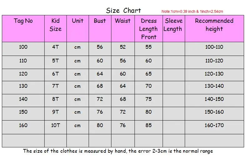 Короткая Таблица размеров платья