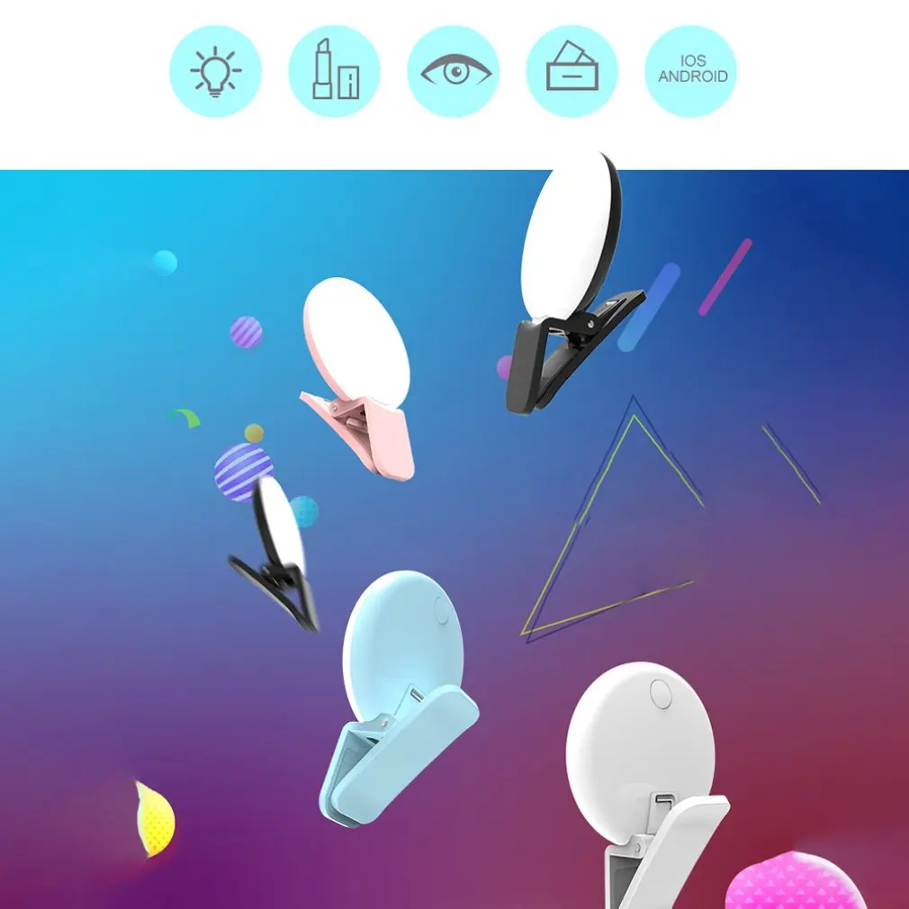 Светодиодный светильник для селфи с кольцом, портативная лампа для селфи, светящаяся лампа с зажимом для камеры, видеосъемка, точечный светильник