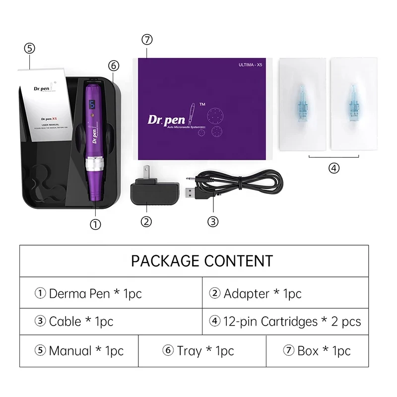 Функция Dr.pen X5: А. Не разрушает структурную целостность кожи B. Постепенно удаляет кожу глубоко токсинами и отходами C. Установить прямую транспортировку между кожей и продуктом красоты D. Способствует метаболизму кожи Е. Улучшает способность заживления ран и омолаживания F. Отсутствие побочного эффекта, безопасный и надежный G. Простое управление H. Эффект более замечательный, чем обычные продукты красоты I. 12 игл дермы-ваш лучший выбор для косметических процедур и ухода за кожей Преимущество: 1. Цифровой экран для скорости 2. Небольшая вибрация, супер тихий 3. Высокоскоростной внутренний двигатель, мощный двигатель до 16000 об/мин 4. Перезаряжаемая батарея может быть подключена или без шнуровки 5. 5 уровней скорости 6. Все корпуса изготовлены из алюминиевого сплава 7. Уникальный нескользящий дизайн 8. Точность калибровки петли 9. Регулируемая глубина иглы 10. Винтовая Блокировка картриджей, чтобы минимизировать сопротивление 11. Нет перекрестной инфекции/одноразовые расходные материалы иглы один раз. Нажмите здесь, чтобы купить иглы для Dr pen X5Смотрите так же другие товары: