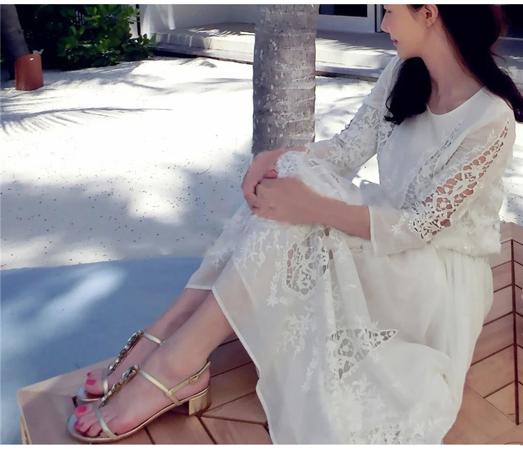 White Embroidered Silk Dress Slim Beach Skirt Super Fairy Beach Holiday Woman Summer
