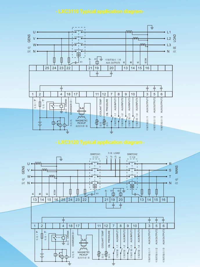 Контроллер генератора LXC3110, контроллер автоматизации электростанции, интегрирующий цифровые, интеллектуальные и сетевые технологии, дизельные генераторные установки для единой системы автоматизации и контроля, автоматический запуск/остановка генератора, измерение данных и тревога, И функция «Три пульта дистанционного управления» (для оснащения модулем RS485). Контроллер с ЖК-дисплеем с большим экраном, дополнительным интерфейсом на китайском, английском, испанском и русском языках с простой и надежной эксплуатацией. Параметры для достижения различных точных измерений, регулировки уставки, настройки времени и порога и других функций, контроллер всех параметров можно настроить с передней панели контроллера или с помощью ПК через USB, программирование интерфейса RS232, настройка и мониторинг. Его компактная, простая проводка, высокая надежность и может широко использоваться во всех типах систем автоматизации генераторов.