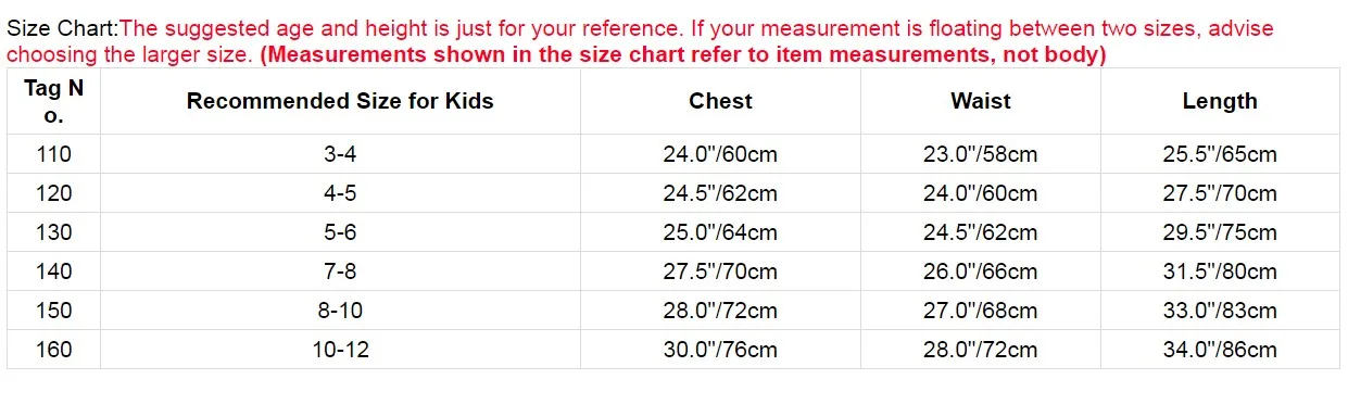 Размеры таблицей:Предполагаемый возраст и рост указаны только для справки. Если под ваши замеры подходят два размера, мы рекомендуем выбрать больший размер.(Измерения, показанные в таблице размеров, относятся к измерениям товара, а не к телу)