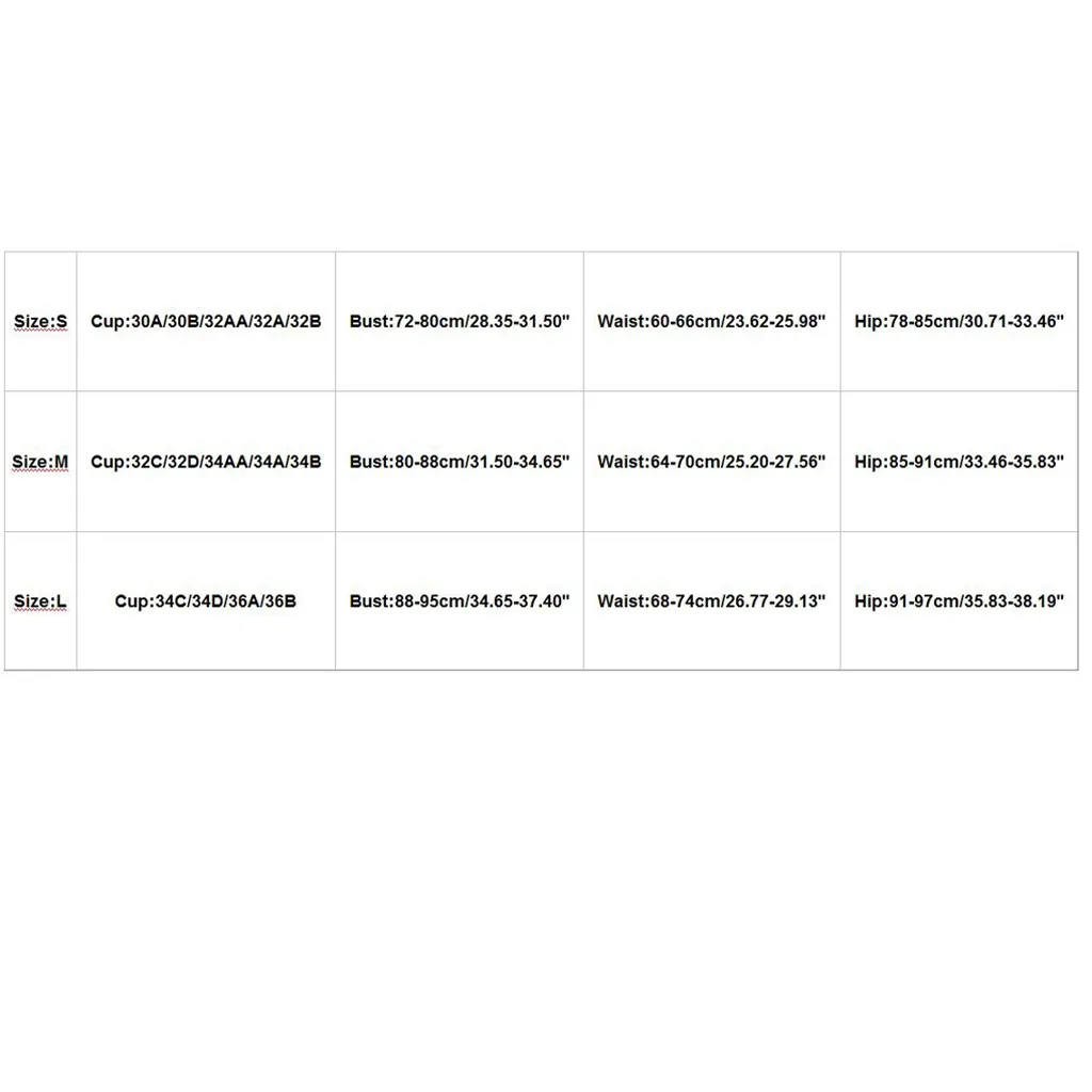 | M | 32C/32D/34AA/34A/34B | 80-88cm/31.50-34.65'' | 64-70cm/25.20-27.56'' | 85-91cm/33.46-35.83'' |
