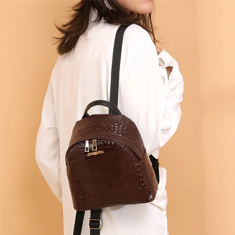 Fashion Women Travel Student Alligator Pattern School Bag Backpack Shoulder Bag The bag is perfect in workmanship. The elegant design can show your beautiful temperament. More humanized design for you. It is very suitable for Wedding , party, ball, daily casual wearing, travel, office occasion. Great present for your friend,your family or yourself. Description : Gender: Women Material: Artificial leather Style type: Shoulder Bag,Backpack Closed way:Zipper Style: Fashion Pattern design: Alligator Applicable scenes: leisure, banquet, travel,Shopping Size: 21cm(L)x11cm(W)x20cm(H)/8.26(L)x4.33(W)x7.87(H)" Package Content:1PC Backpack There is a little smell from the new bag normally, it'll be dispersed through air. Note:1.All dimensions are measured by hand, there may be 2-3 cm deviations; 2.Due to the difference between different monitors, the picture may not reflect the actual color of the item. Thank you!